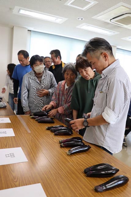 ナス高品質維持を 最盛期に向け規格確認