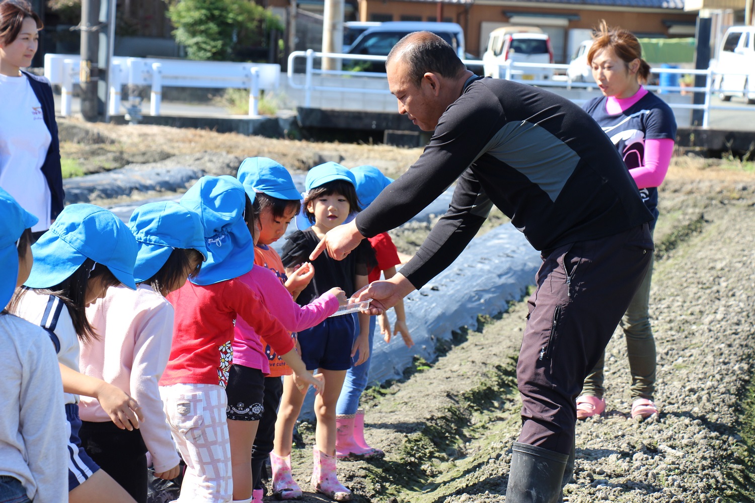 JA柳川青年部昭代支部は27日、昭代保育園の園児50人を昭代支所横の畑に招き、ダイコンの種まきを行なった。農業の楽しさを知ってほしいと青年部盟友が企画し、毎年開催している。