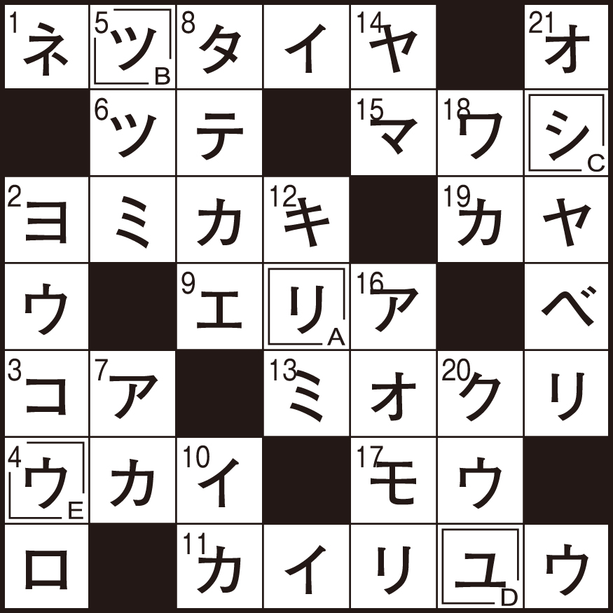 二重マスの文字をA~Eの順に並べてできる言葉は何でしょうか?