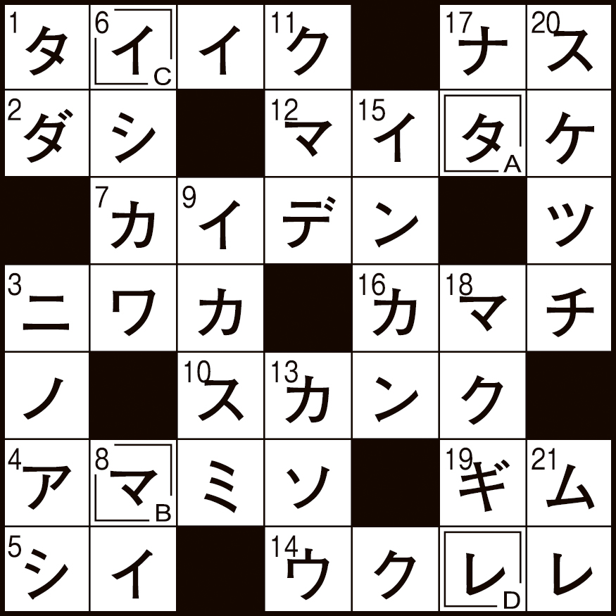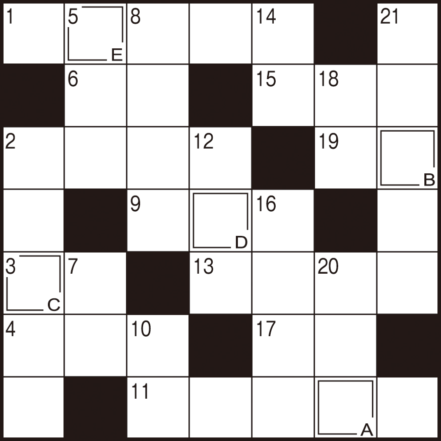 二重マスの文字をA〜Eの順に並べてできる言葉は何でしょうか?