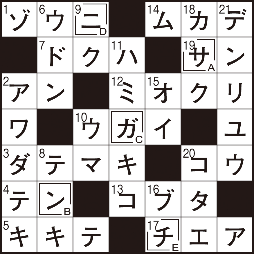 二重マスの文字をA〜Dの順に並べてできる言葉は何でしょうか?