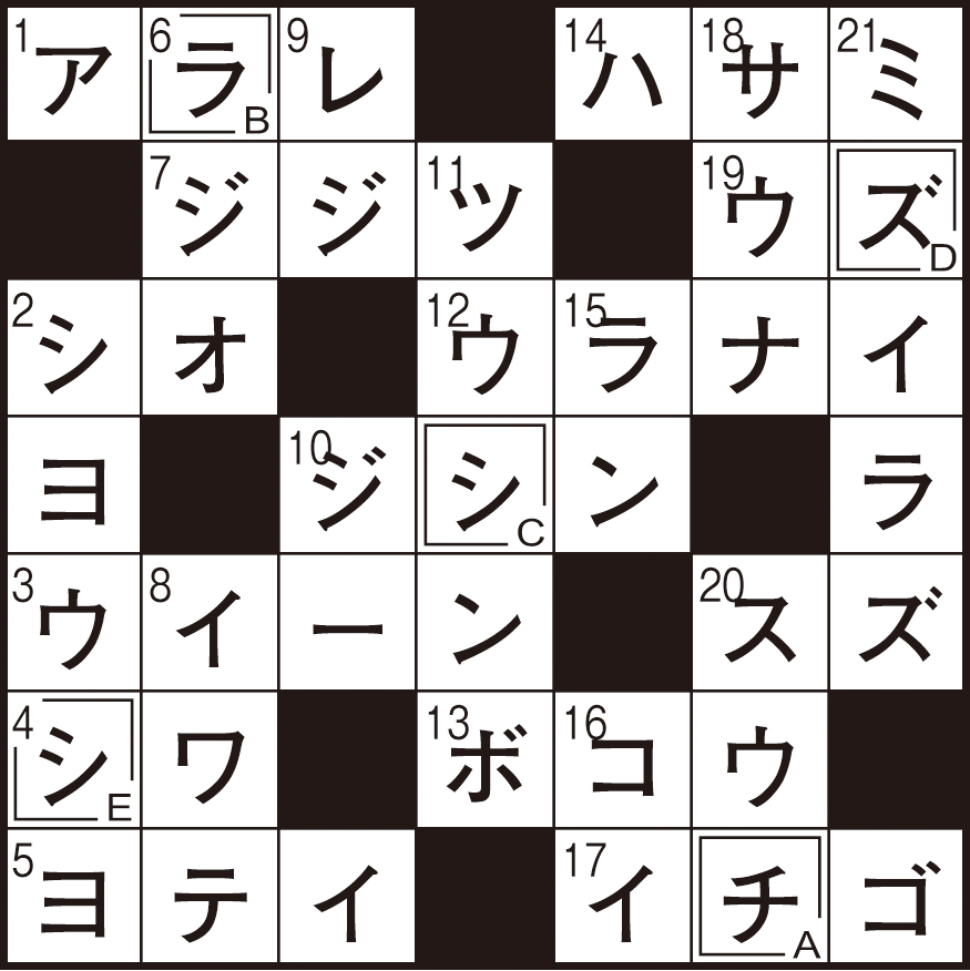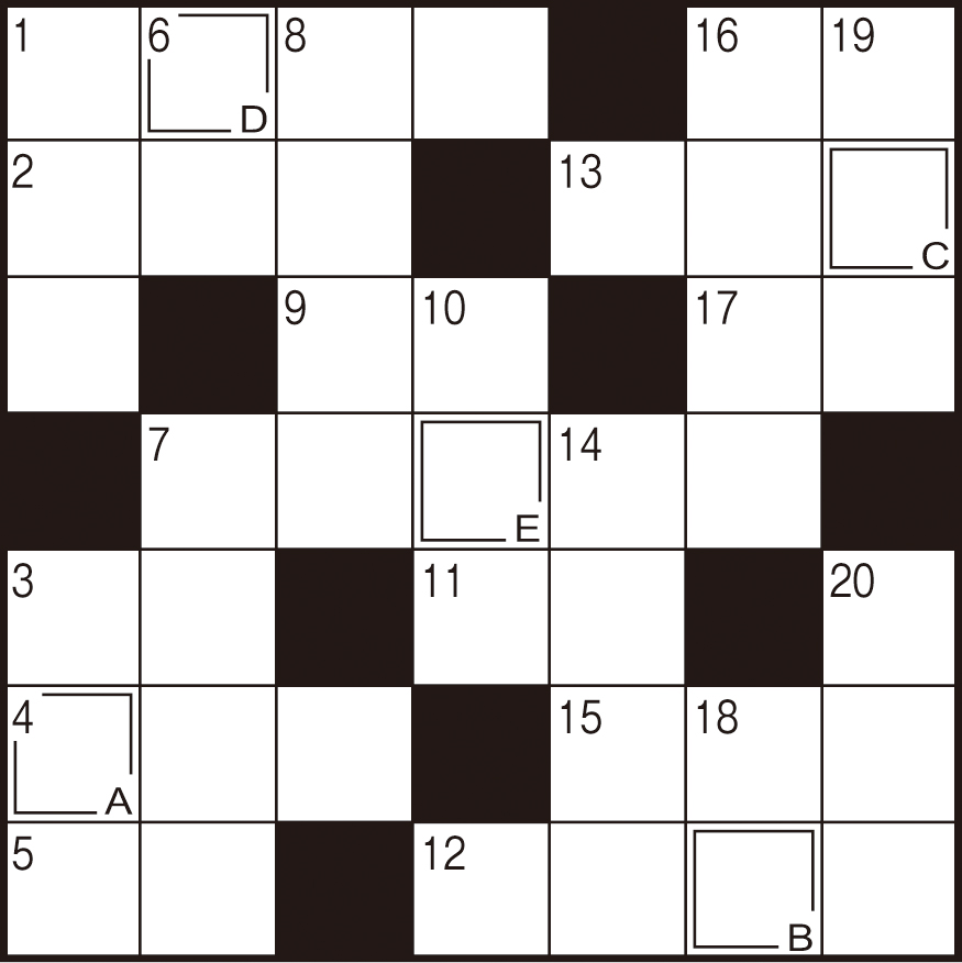 二重マスの文字をA〜Eの順に並べてできる言葉は何でしょうか?