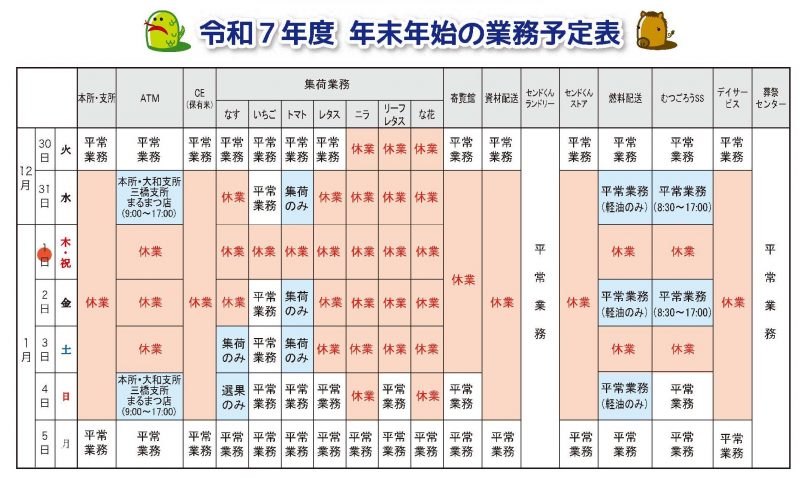 ATM・JAネットバンク等のサービス一時休止のご案内